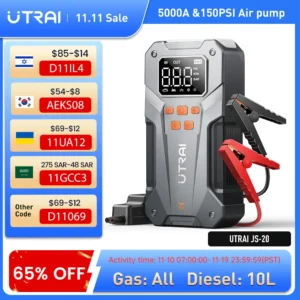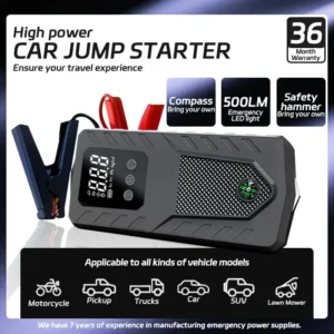 בוסטר התנעה נייד לרכב. מתניע מנועי בנזין ודיזל, עם סוללת גיבוי USB ותאורת LED. לחירום בדרכים. …