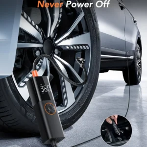 קומפרסור נייד לניפוח צמיגים. נטען, דיגיטלי, מדידת לחץ אוטומטית. לרכב, אופנוע ואופניים. הזמן עכ…